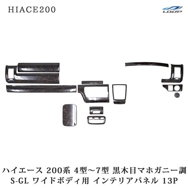 > ハイエース レジアスエース 200系 4型 5型 6型 7型 ワイド スーパーGL インテリアパネル 13P ダークプライム 黒木目マホガニー調