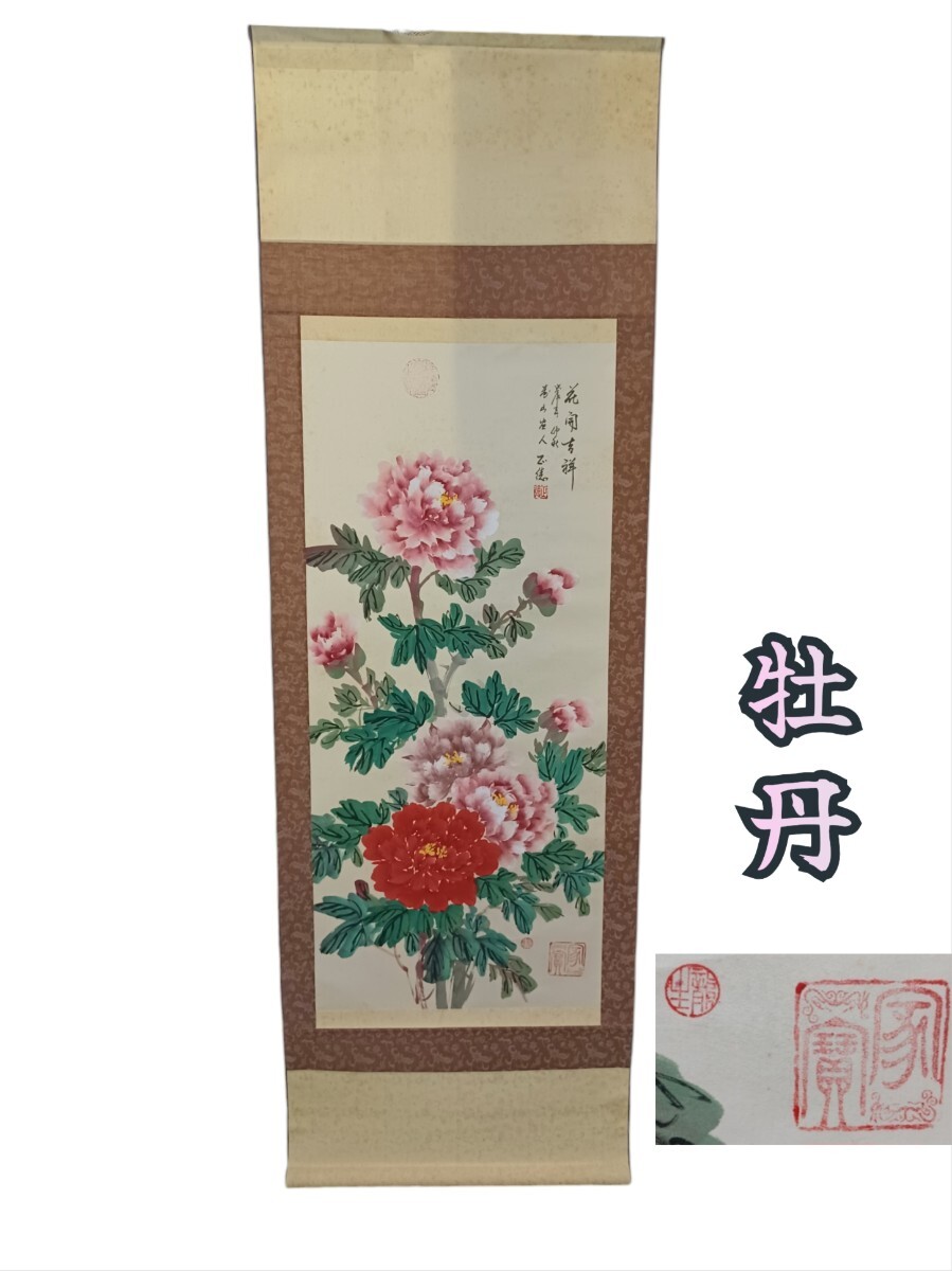 - 岩①)牡丹 掛け軸 箱入り 掛軸 花柄 花 四季花 日本画 和室 床の間 コレクション インテリア 241031(I-1-2