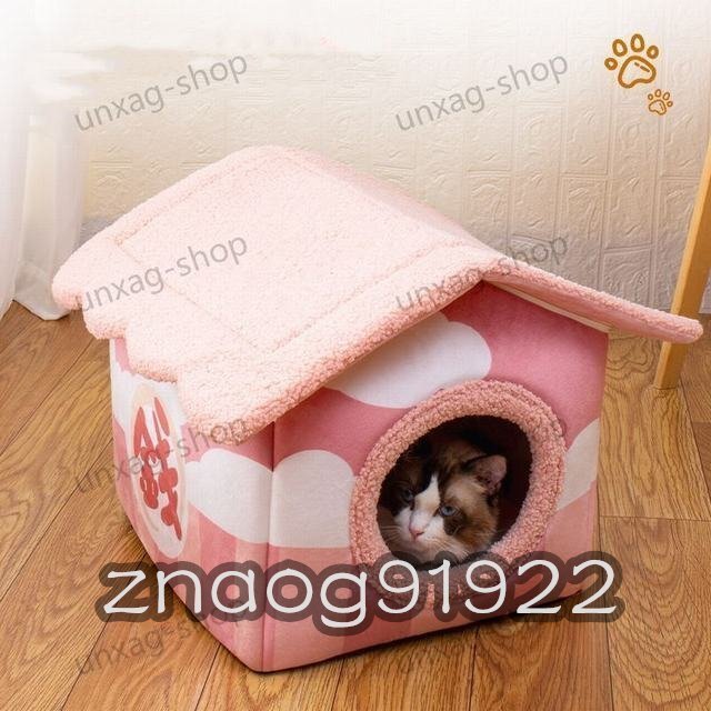 > ペットハウス 猫 犬 ベッド ペットベッド ふわふわ 暖か もこもこ ペット用品 滑り止め クッション 洗濯可 秋冬 ピンク Mサイズ
