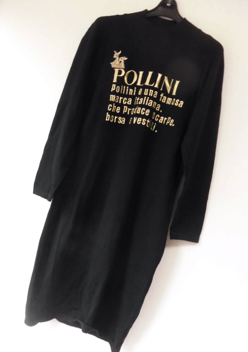 - ●美品POLLINI ポリーニ*バンビ*豪華金糸ロゴ刺繍/黒ハイネックニット長袖ワンピース/サイズ40/L相当