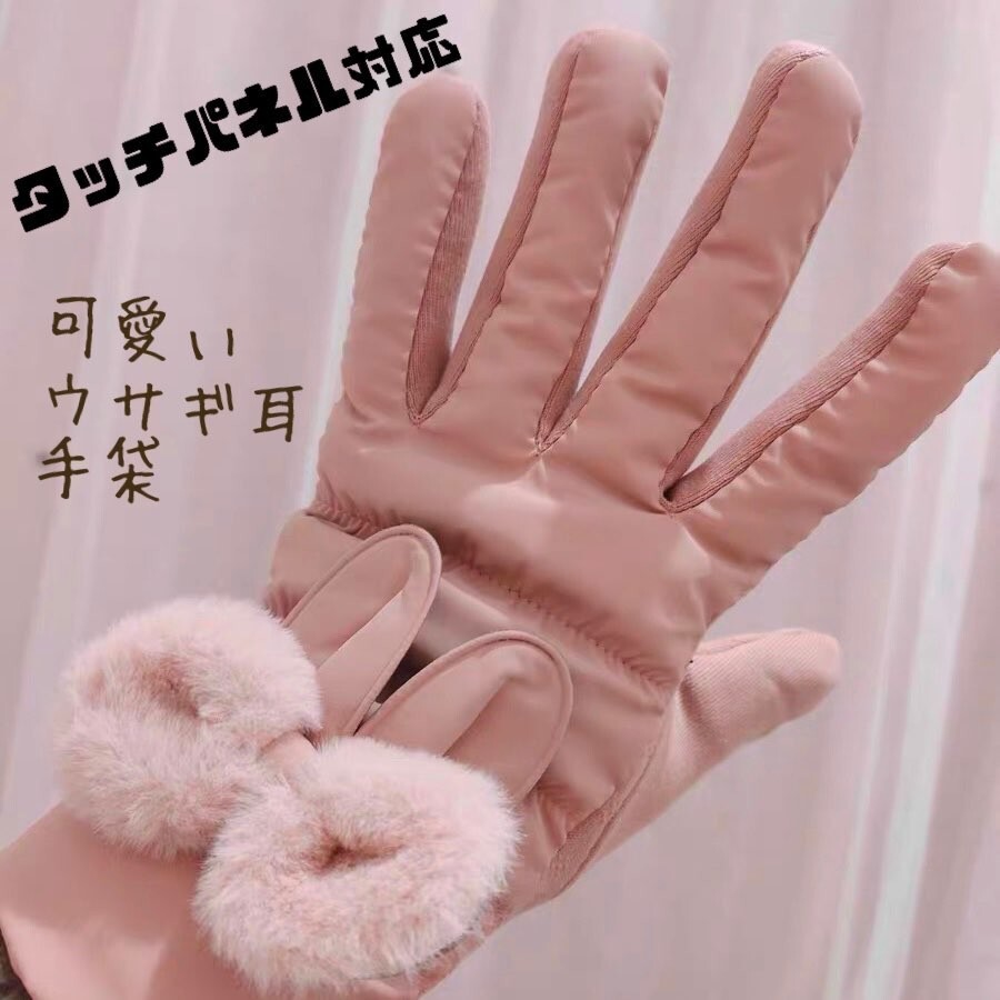 - ピンク レディース ナイロン スマホ 手袋 グローブ ウサギ耳 ポンポン 新品 滑り止め スマホ手袋 かわいい