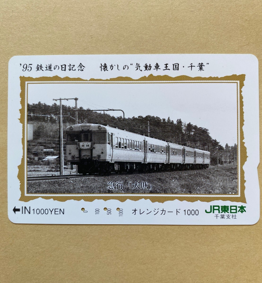 - 【使用済】 オレンジカード JR東日本 '95 鉄道の日記念 懐かしの気道車王国・千葉 急行「犬吠」