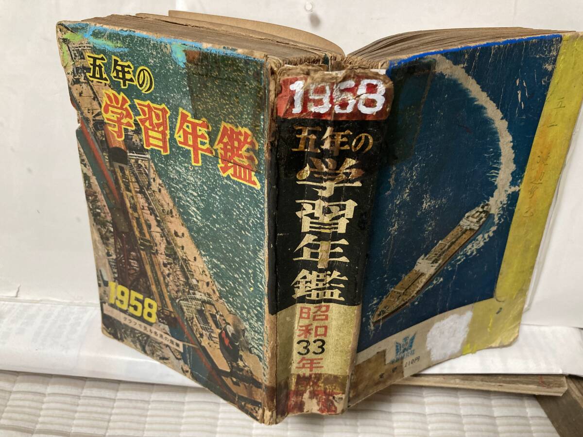 - 五年の学習年鑑 1958(昭33)学研/戦後13年の世界情勢激動期,日本の復興発展時期を反映した貴重な記事満載,表紙は劣化しているが内容は最高!