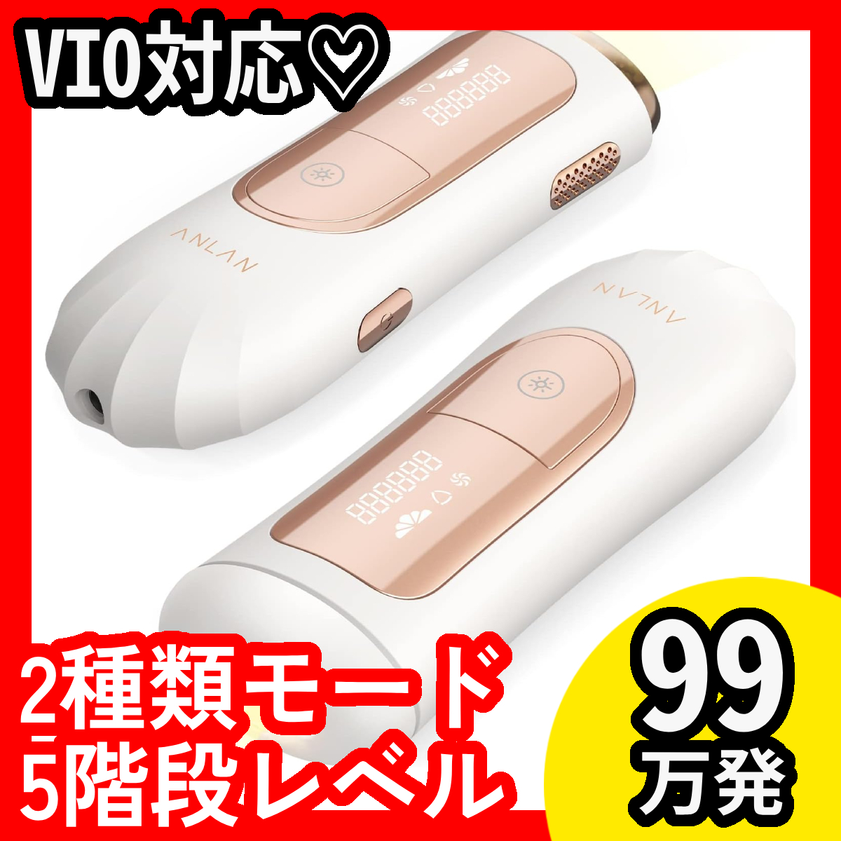 - 顔/全身対応★ANLAN★光美容器★vio対応★99万発★家庭用★男女兼用