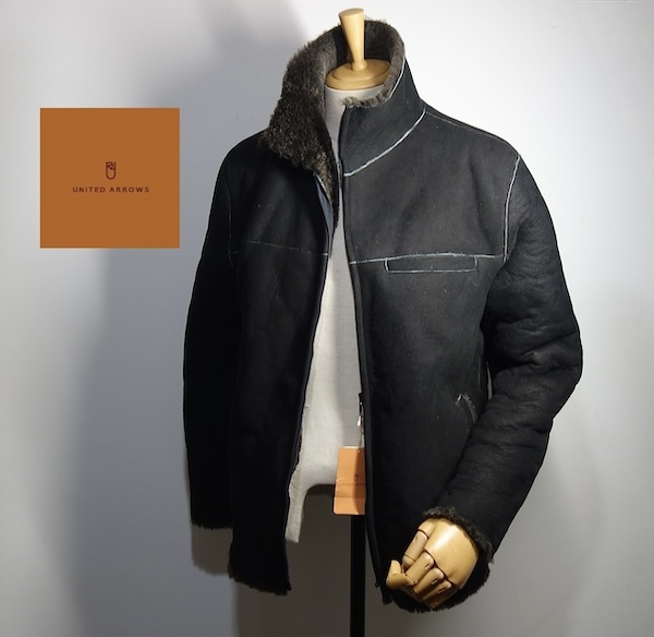 - TK 希少 デッドストック 新品 00s ユナイテッドアローズ BLUE LABEL リアルムートン ボア レザージャケット L 黒 ブラック Y2K