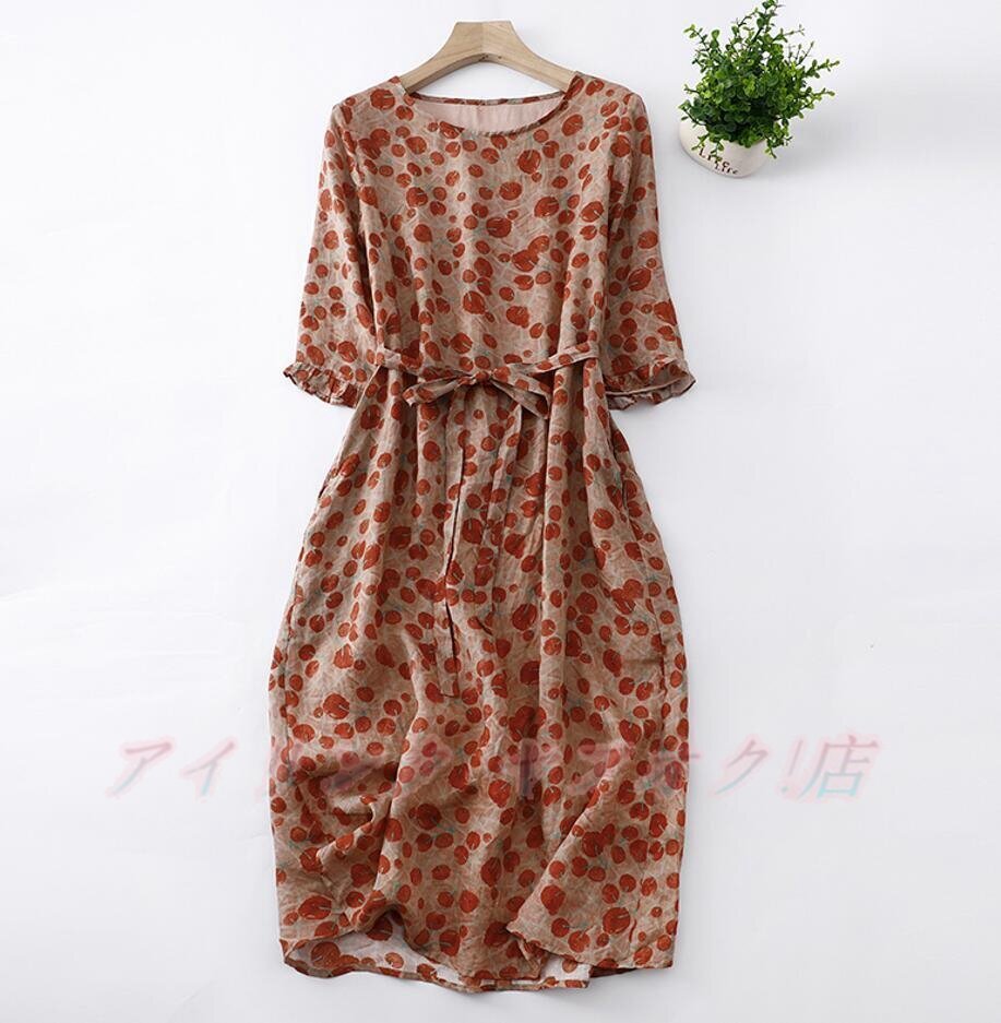- ☆新品ロングワンピース レディース 夏 プリント柄 半袖 ワンピース 大きいサイズ ロングワンピース 森ガール 大人 ピンク