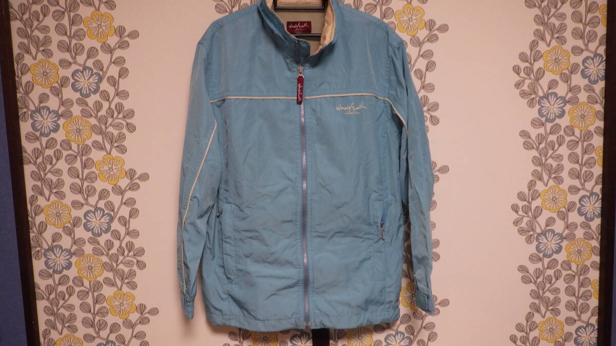 > ホールアース ジャケット M ライトブルー クリーニング済 ファスナーポケット 裾コード エアポケット フード無し (株)デサント