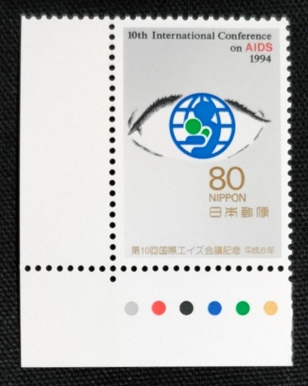- [24110506]【第10回国際エイズ会議記念】単片 CMカラーマーク付「瞳と会議のマーク」80円 1994年発行 美品