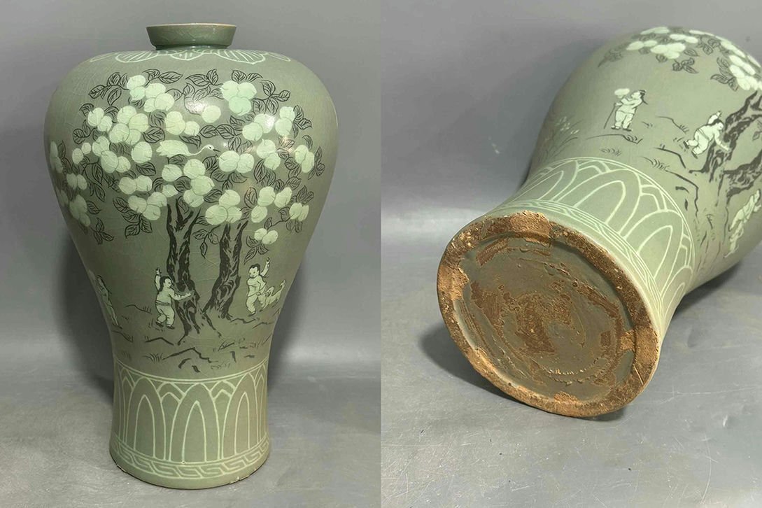 - ▼渡鶴羽▼P205珍品旧蔵 朝鮮 高麗磁 朝鮮古陶磁器 古高麗 李朝時代 高麗青磁梅瓶