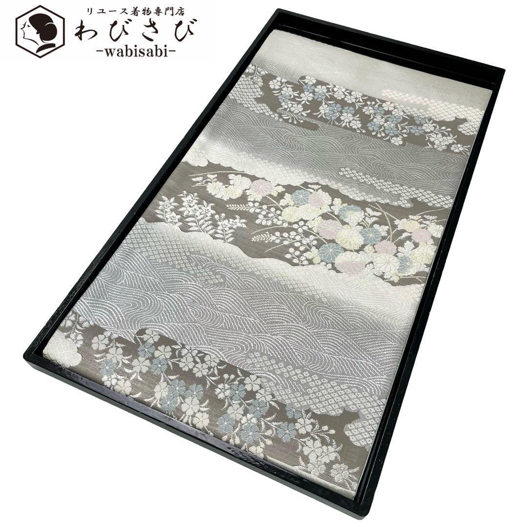 - 袋帯 西陣 証紙付 京小袖 エ霞に花柄模様 金銀糸 フォーマル O-4343