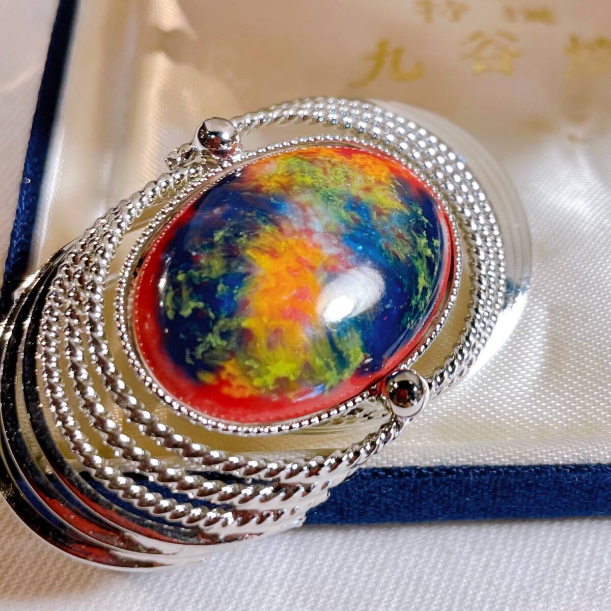 > アンティーク 特撰 九谷焼 ブローチ 美術陶芸 ケース付き 美品 レトロ 伝統工芸 陶器 シルバー ビンテージ アクセサリー 和装 着物 箱 帯留