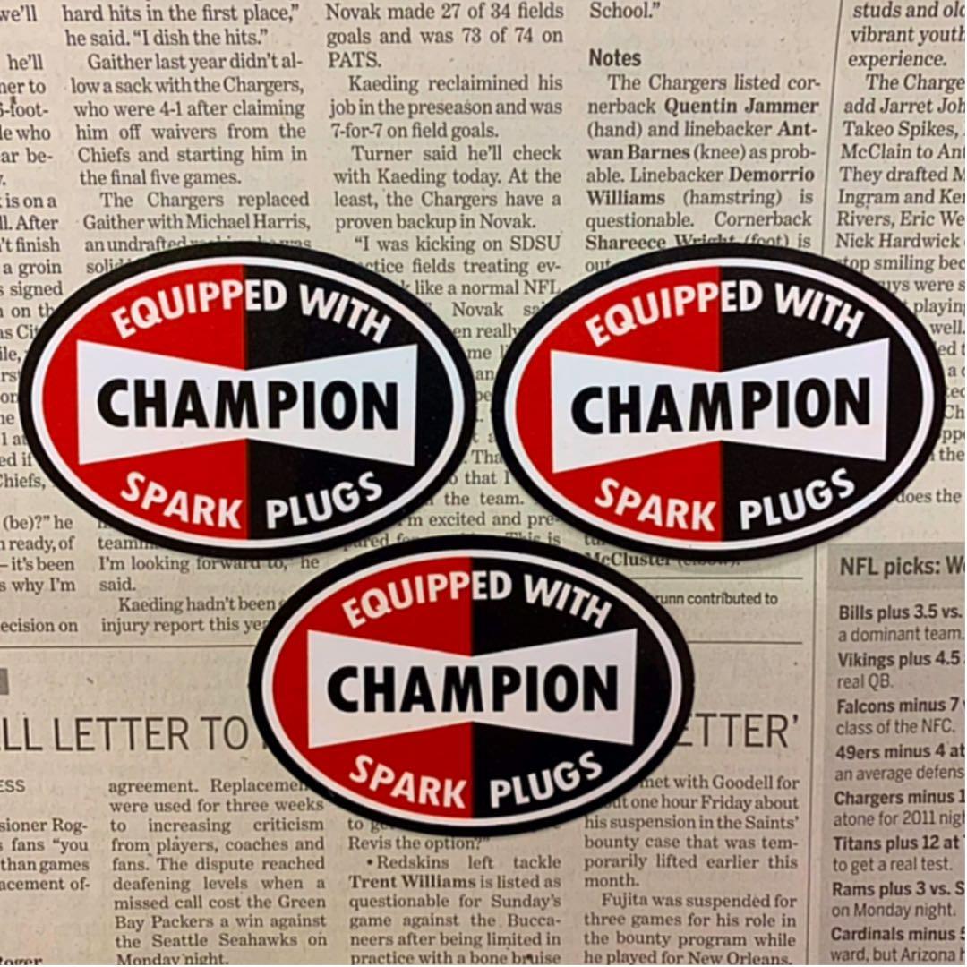 - CHAMPION チャンピオン ステッカー 3枚セット レーシング 防水 車 バイク シール USA スパークプラグ カスタム ドレスアップ アメ雑