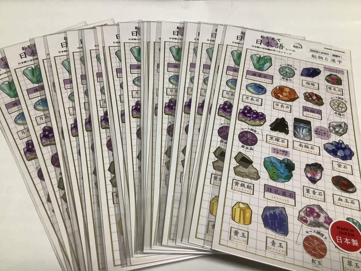 - おしえて日本語シール 20枚 鉱物と漢字 / 金箔押し 元素 鉱物 宝石 豆知識 / ステッカー 大量 沢山 日本製