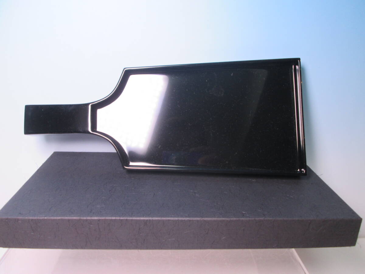 - ☆お料理屋さんの器 黒塗 羽子板形 干菓子盆 30,2cm 紙箱付 料理盛り皿/懐石/割烹/日本料理