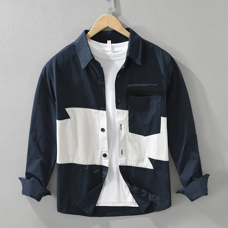 - ☆新品 カーゴシャツ トップス シャツジャケット 春秋 メンズ シャツ 長袖シャツ コットン ワーク 紺色 2XL