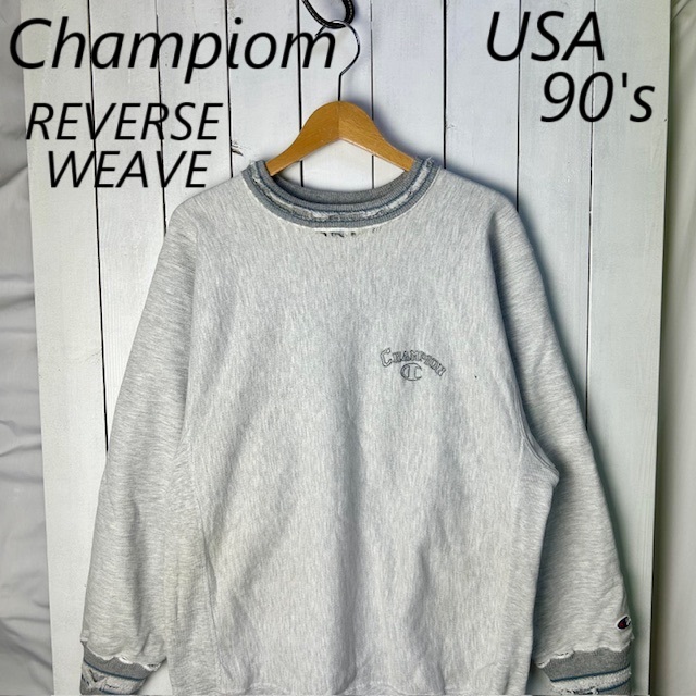 > US古着 90s USA製 チャンピオン リバースウィーブ スウェット XL 薄グレー ボロ オールド ヴィンテージ アメリカ製 ダメージ Champion●242