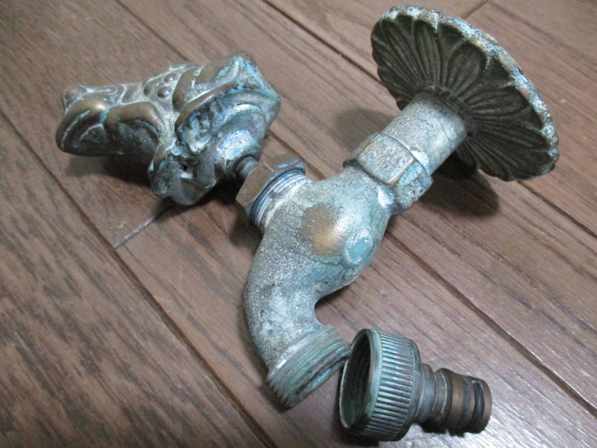 - カエル フロッグ 蝦蟇 真鍮 黄銅 古美仕上げ 蛇口 屋外水栓柱 ホース取付金具付き 無事カエル 縁起物 レターパックプラス