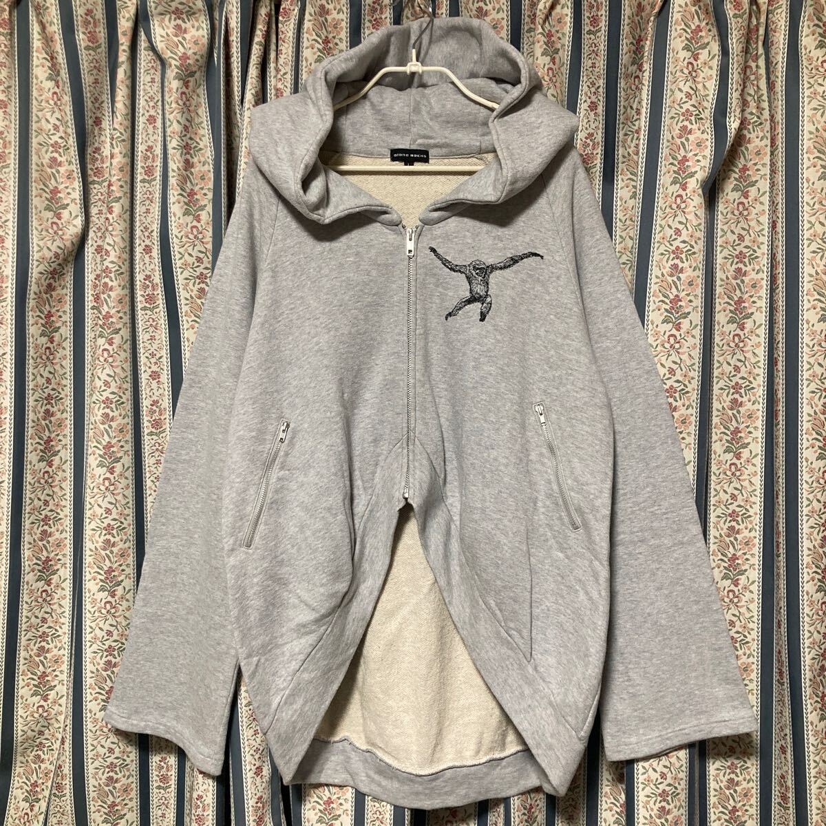 > レア!オゾンロックス ナマケモノ刺繍 オーガニックコットンスウェット ジップアップパーカー 裏毛 オーバーサイズ フーディー L