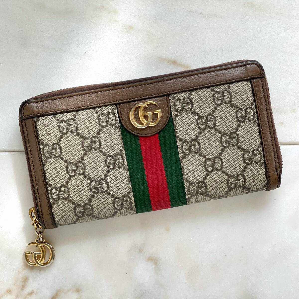 - GUCCI グッチ オフディア シェリーライン GGスプリーム ラウンド長財布