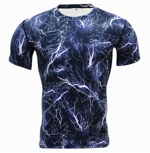 > Tシャツ コンプレッションインナー 稲妻模様 ネイビー シャツ スポーツ トレーニング ダイエット シャツ ジム ヨガ DJ523