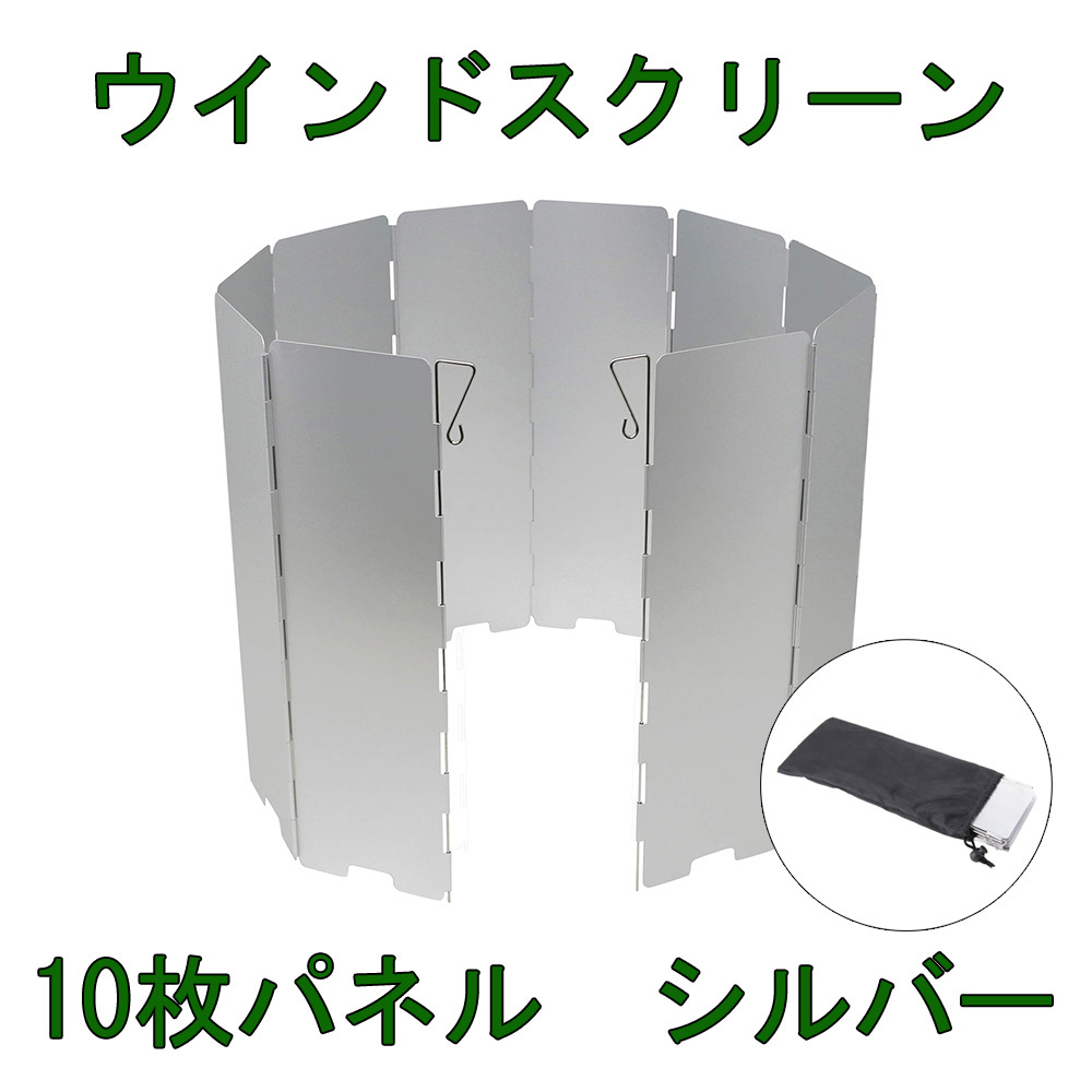 - アウトドア ウインドスクリーン 折りたたみ式 10面折り 風除け キャンプ 持ち運び BBQ アルミ シルバー 銀