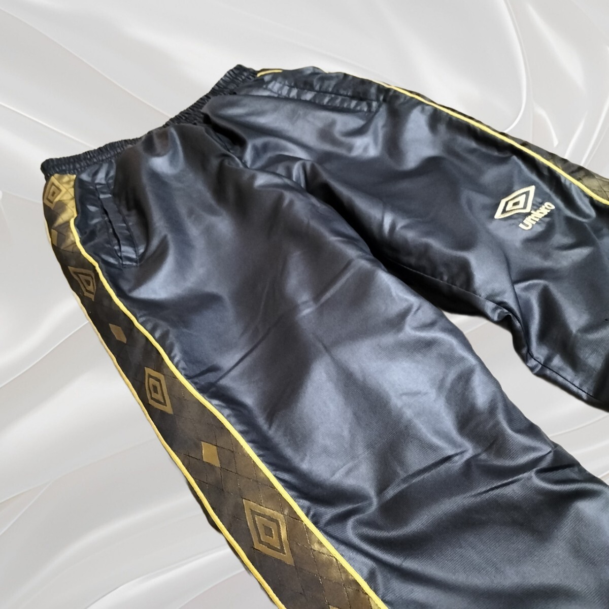 - 美品☆00-10s OLD UMBRO トラックパンツ ジャージ 中わた 暖パン ダイヤモンド刺繍ロゴ メンズ サイズM 黒 金 オールド アンブロ 古着 USED