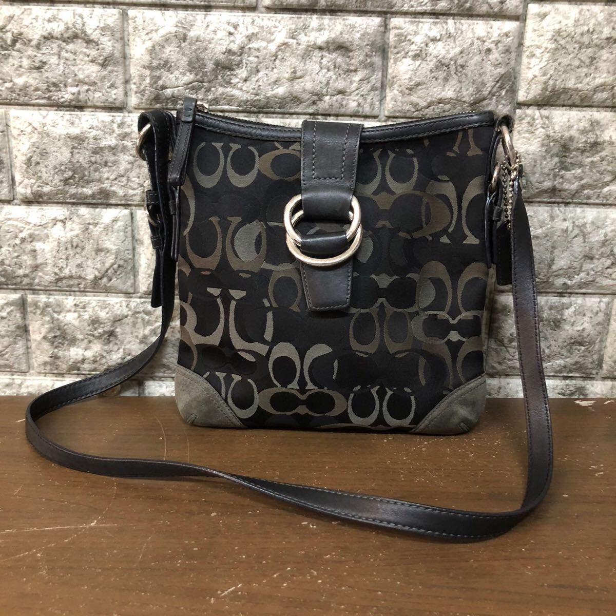 > COACH コーチ レザー キャンバス シグネチャー 斜め掛け ショルダー バッグ ブラック 黒 ハンドバック