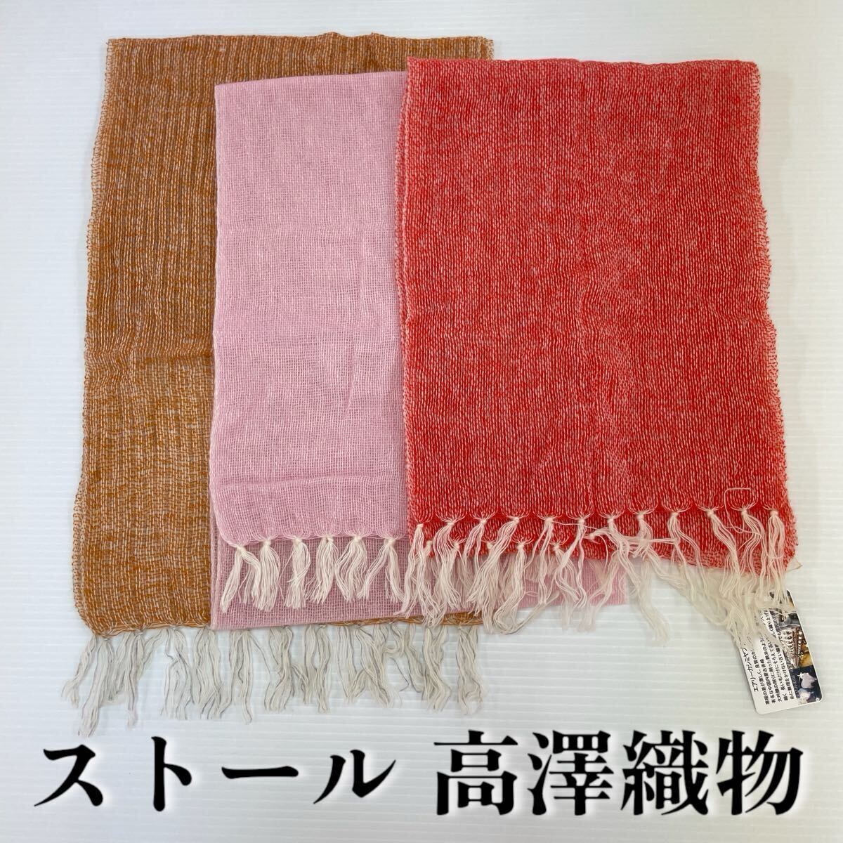 > 【ストール 高澤織物】未使用 カシミヤ100% 赤 ピンク オレンジ 秋冬 スカーフ ショール 肩掛け 膝かけ 国産 日本製 防寒 #0263-407Z2