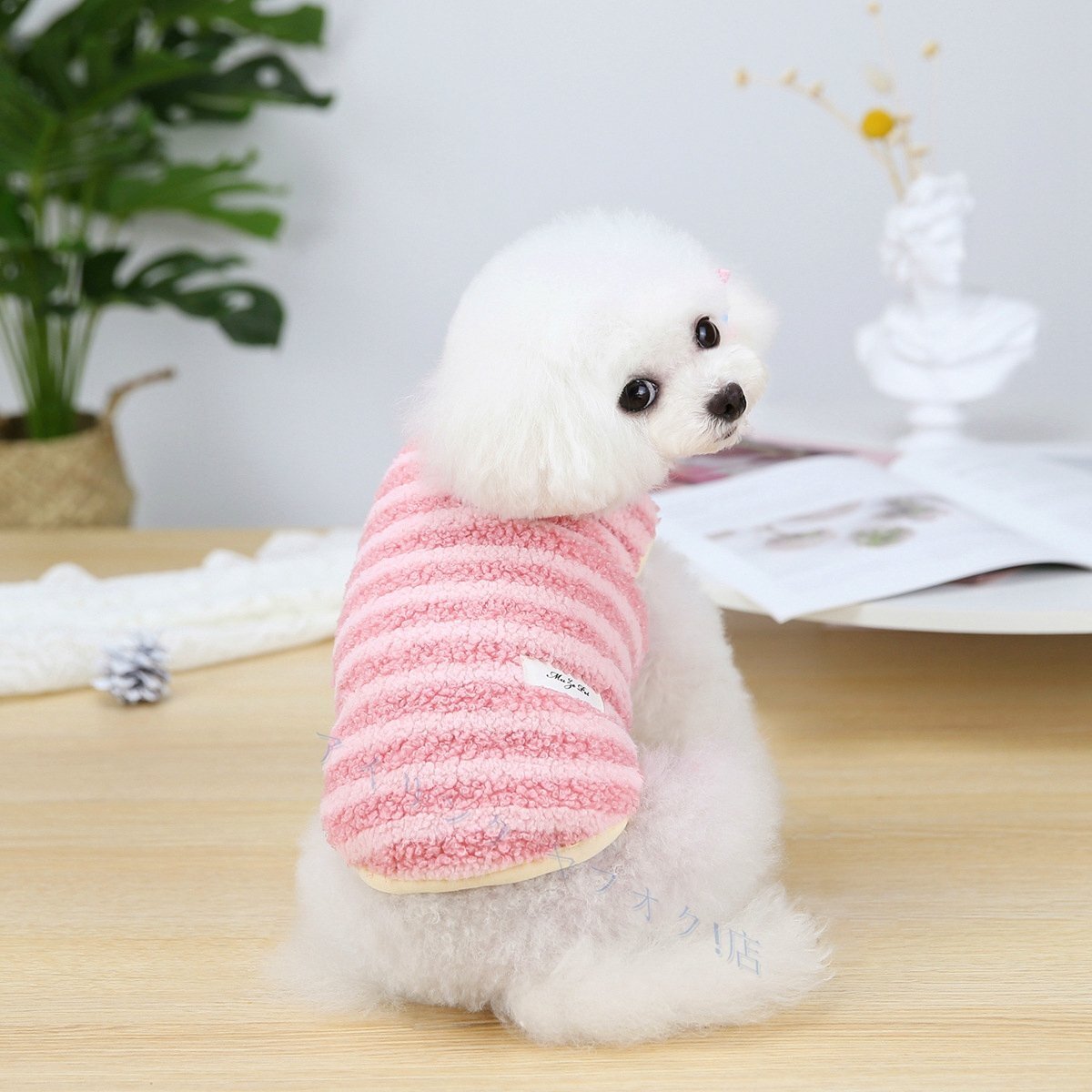 > ☆新品犬服 ボーダー柄 ドッグウェア ベスト 防寒着 アウター ペットグッズ ペット ペット用品 秋 冬 春 小型犬用ピンクM