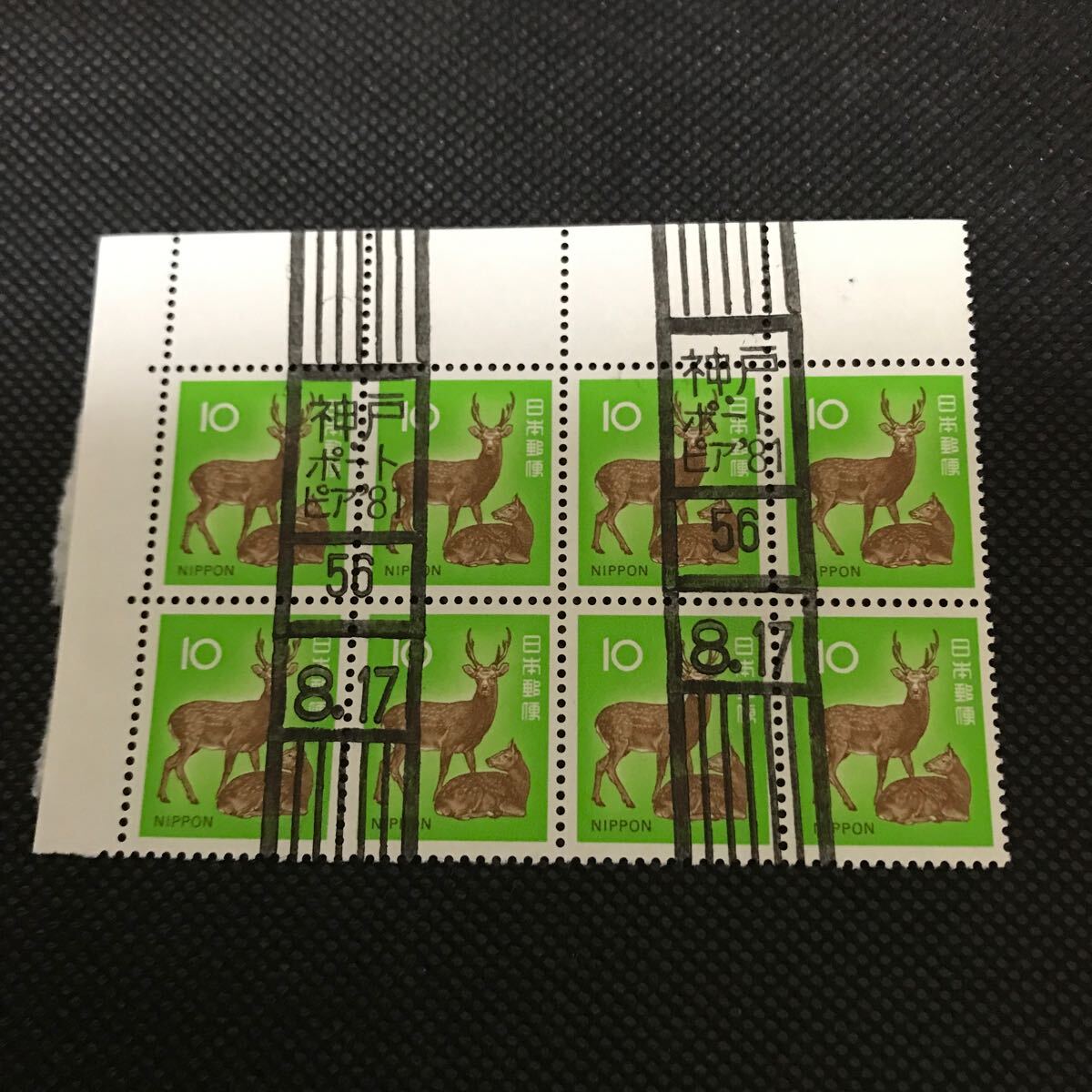 - 切手 ローラー印 満月印 しか 鹿 10円 神戸ポートピア‘81 8枚