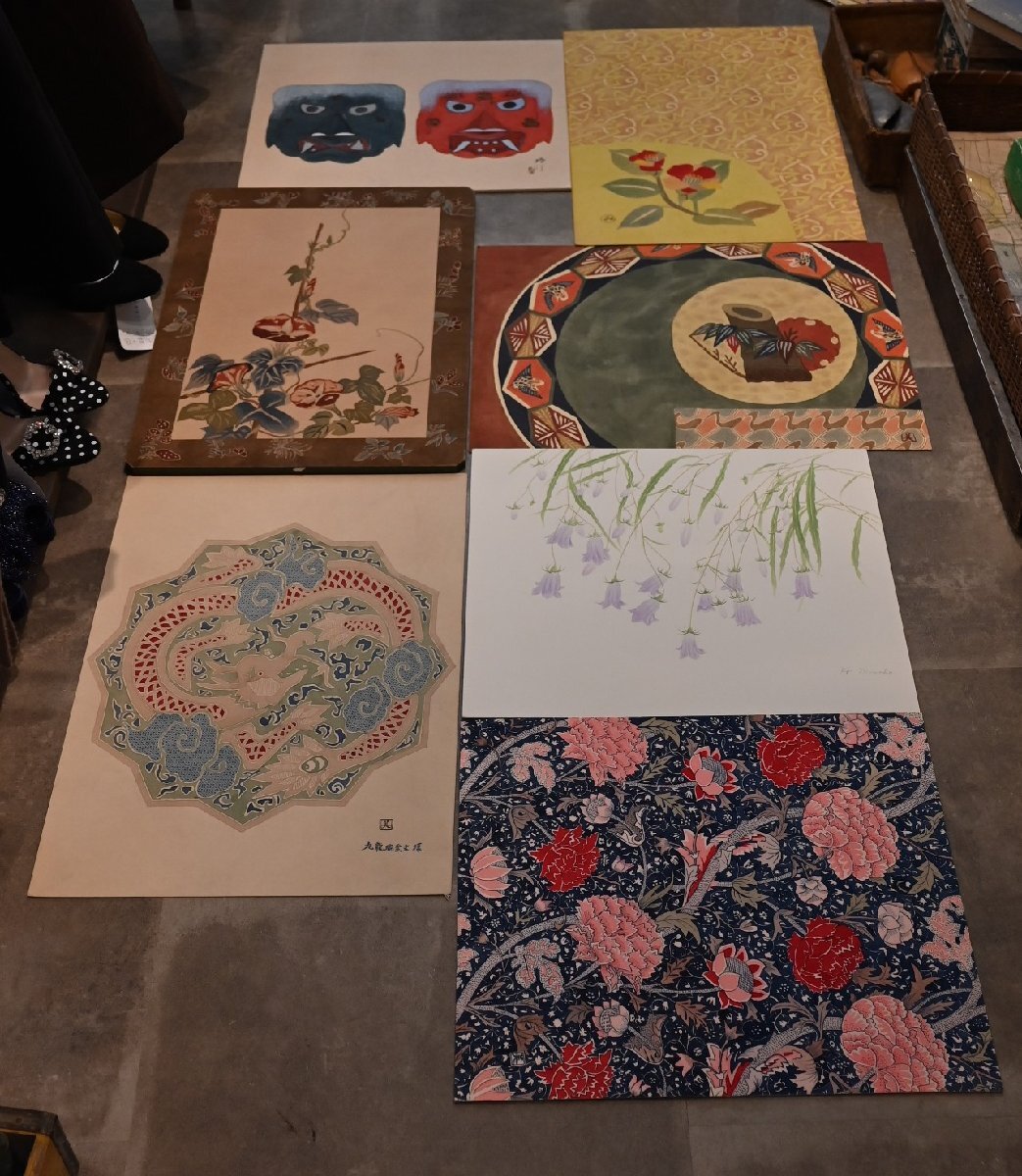 - ○可愛い和柄の木版/染色画 更紗 15点セット F8号 テキスタイル お花柄 和モダン アート ヴィンテージ 古道具のgplus広島 2411i