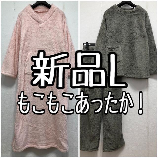 - 新品☆L♪ピンク×グレー系♪もこもこあったかルームウエアまとめて☆w852