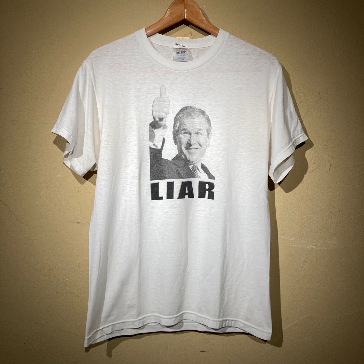 - ★送料込み★ 00's ヴィンテージ 古着 ブッシュ大統領 フォト LIAR 皮肉 メッセージ Tシャツ