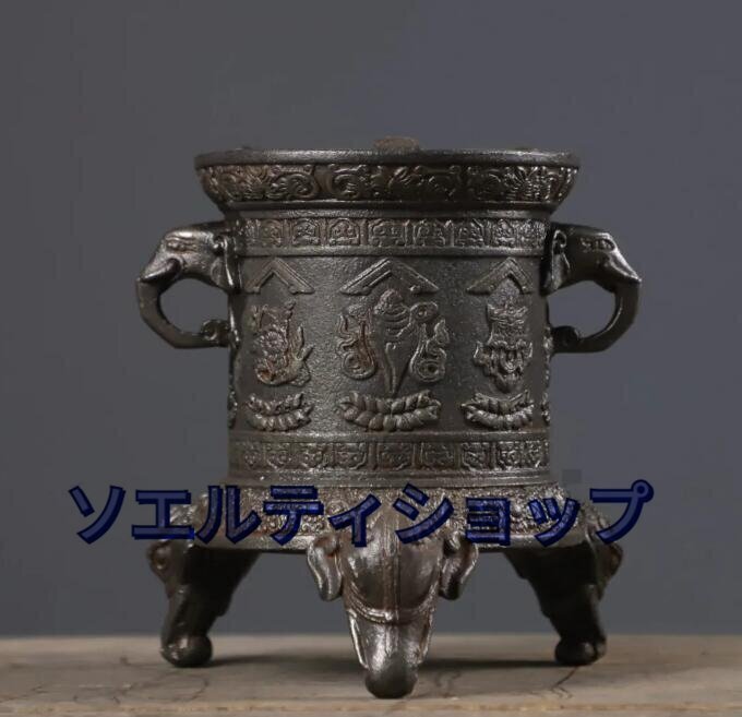 - 鋳鉄器三足両耳象頭炭ストーブ煮茶ストーブ*クラシックホームコレクション置物