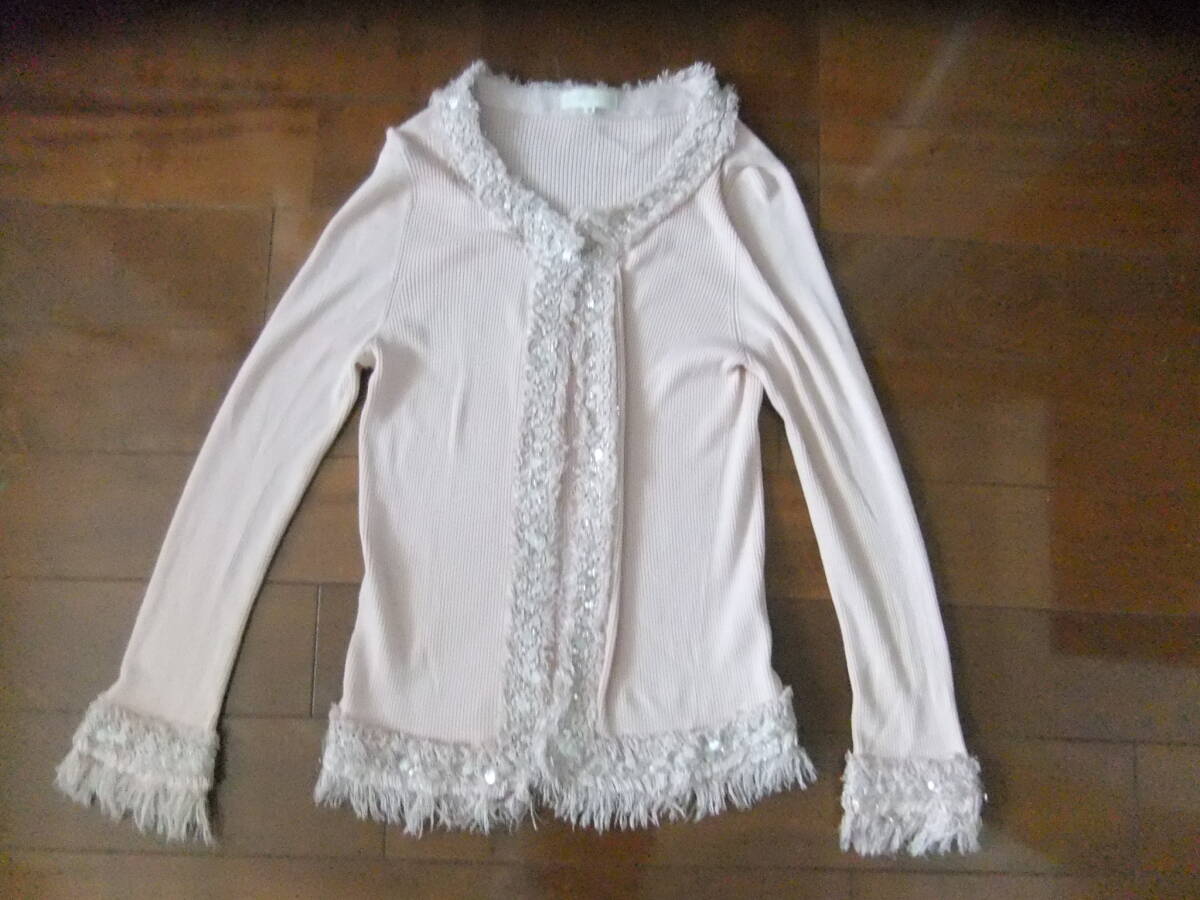 - FRAGILEの淡いピンクのラメ付きカーディガン、サイズ38!