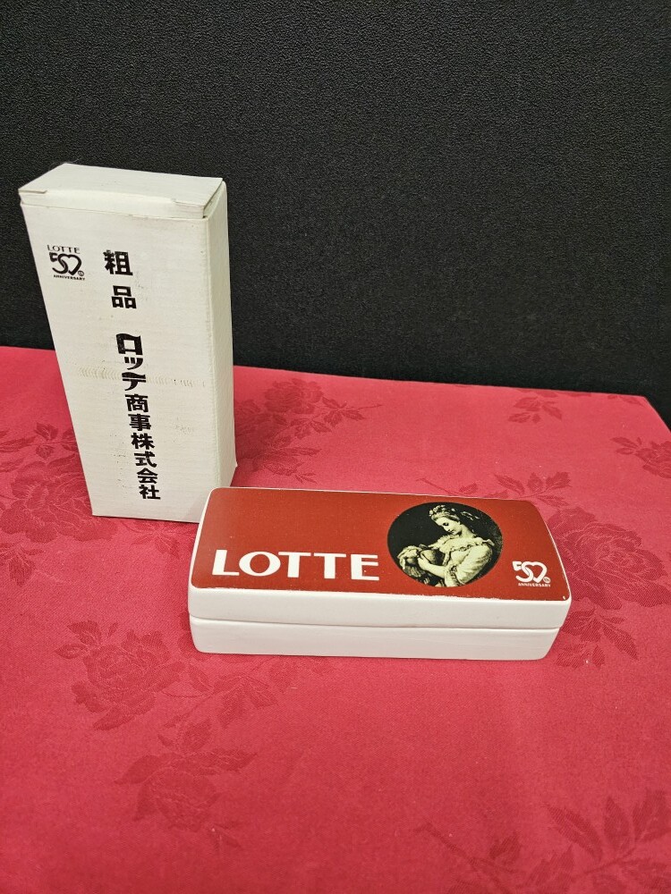 - 入手困難 当時物 陶器 ロッテ商事 LOTTE 50周年記念 小物入れ オルゴール付き サイズ17.5cm×7cm高さ5cm ek-550y2