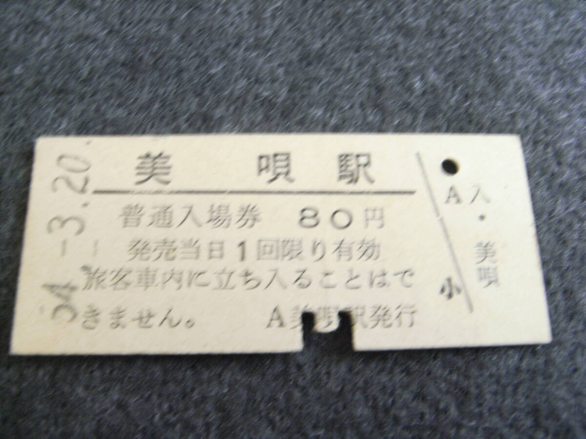 - 函館本線 美唄駅 普通入場券 80円 昭和54年3月20日 国鉄