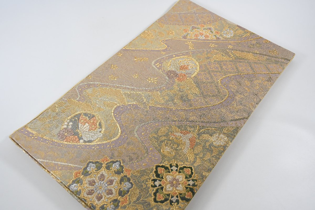> 袋帯 プラチナ箔二重織 更紗 六通柄 金糸 花 帯丈420cm ★着物屋 ne-13066 桜庭呉服店