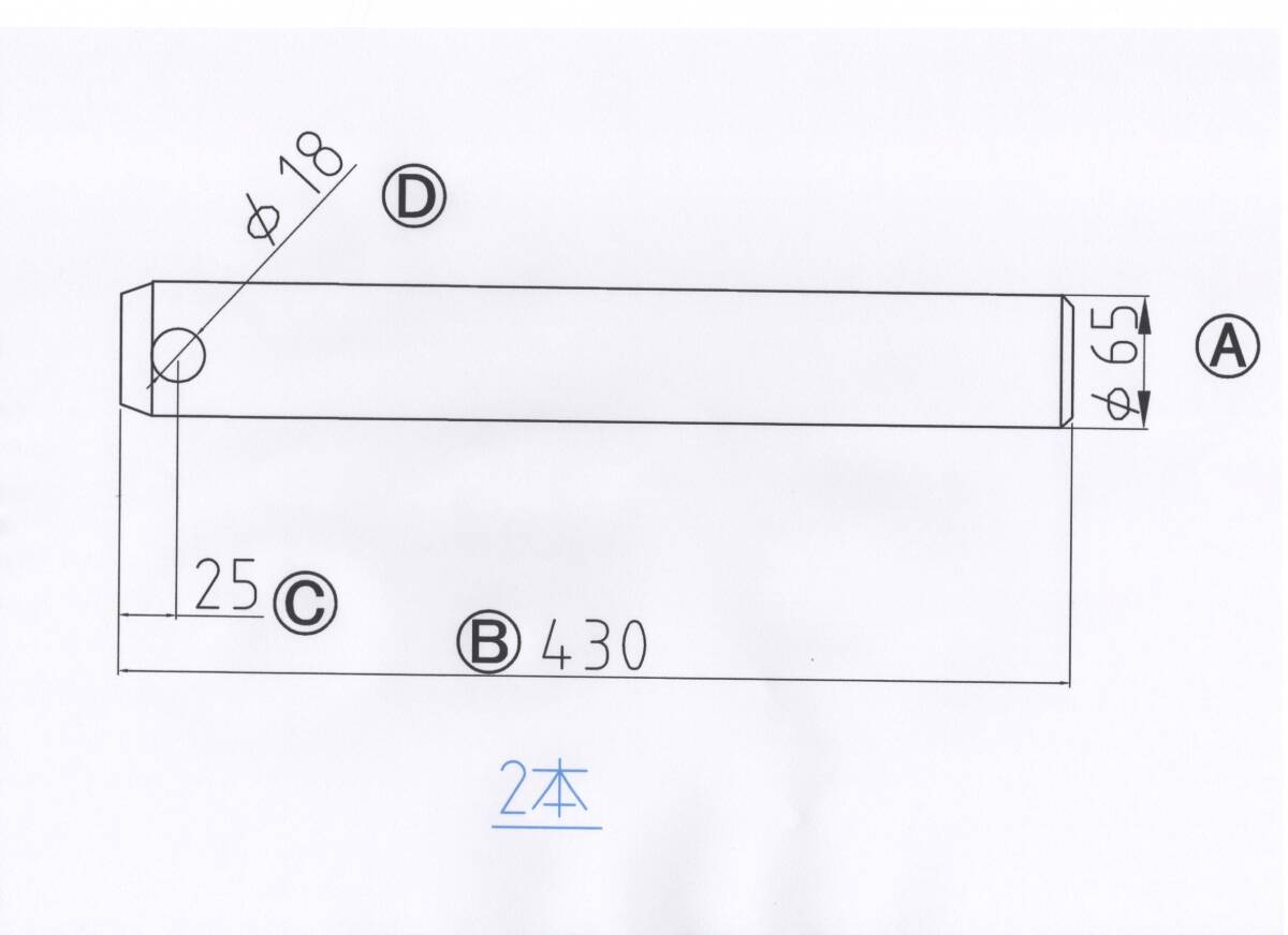 - N0.1939 Φ65用 全長430mm バケットピン 2本 1セット