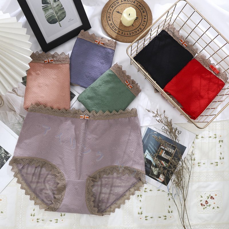 - 新品繊細なレース ショーツ 下着 女性用 6点セット ストレスフリー パンツ レディース ハイウエスト 薄手 通気性 快適 G136 コットン生地