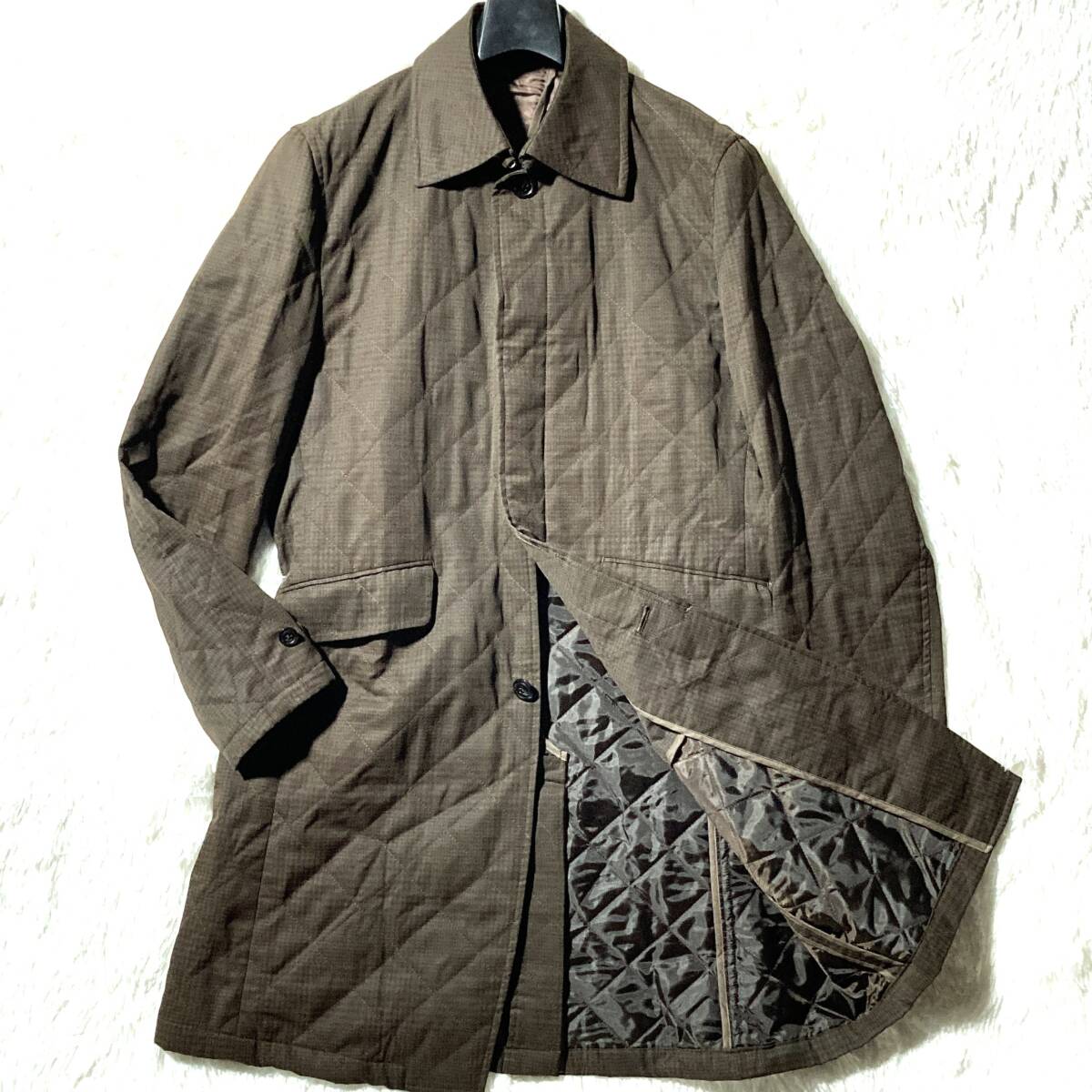 - アバハウス★魅せる大人クラシカル★ロング丈キルティングジャケット コート 千鳥格子チェック 黒茶 2 ABAHOUSE ビジネス用アウターにも◎