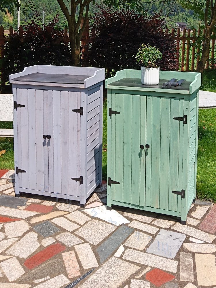 - 新品ベランダ収納庫 天然木 木製 収納ボックス 収納庫 物置き 屋外収納 屋外 収納棚 棚 物入れ ガーデニング 選べる4カラー カントリー風