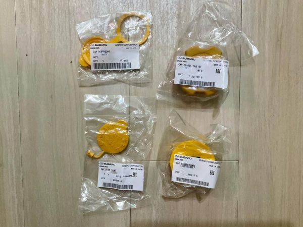 - 【未使用 スバル 純正】R1 R2 ステラ プレオ 黄色キャップセット オイルフィラ リザーブタンク ウォッシャタンク