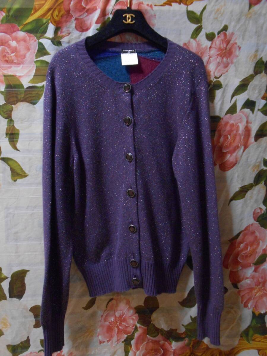 - 豪華品超安 シャネルビジューボタン ラメ入りカシミアカーデ