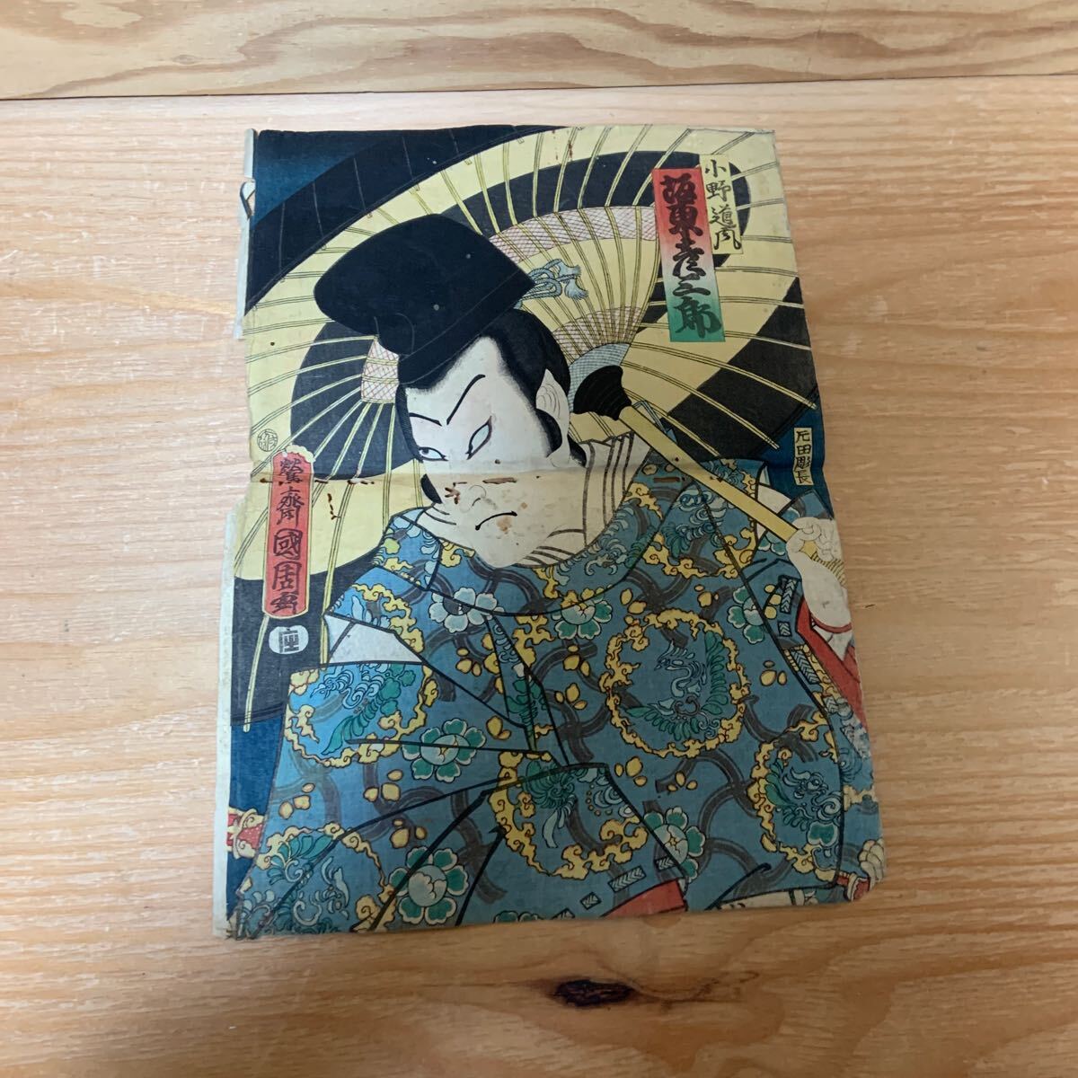 - A90B1-241126 レア[鶯齋國周 豊原国周 坂東彦三郎 木版画 浮世絵 歌舞伎 小野道風 辰田彫長]