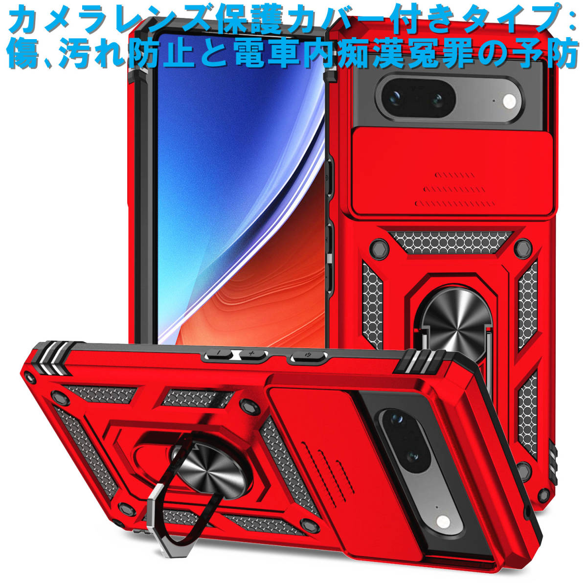 - G在庫処分 赤 Google Pixel 8 Pro ケース 本体 カバー 指リング 画面 保護 守る グーグル ピクセル 米軍 衝撃 頑丈 スタンド ホルダー 最強