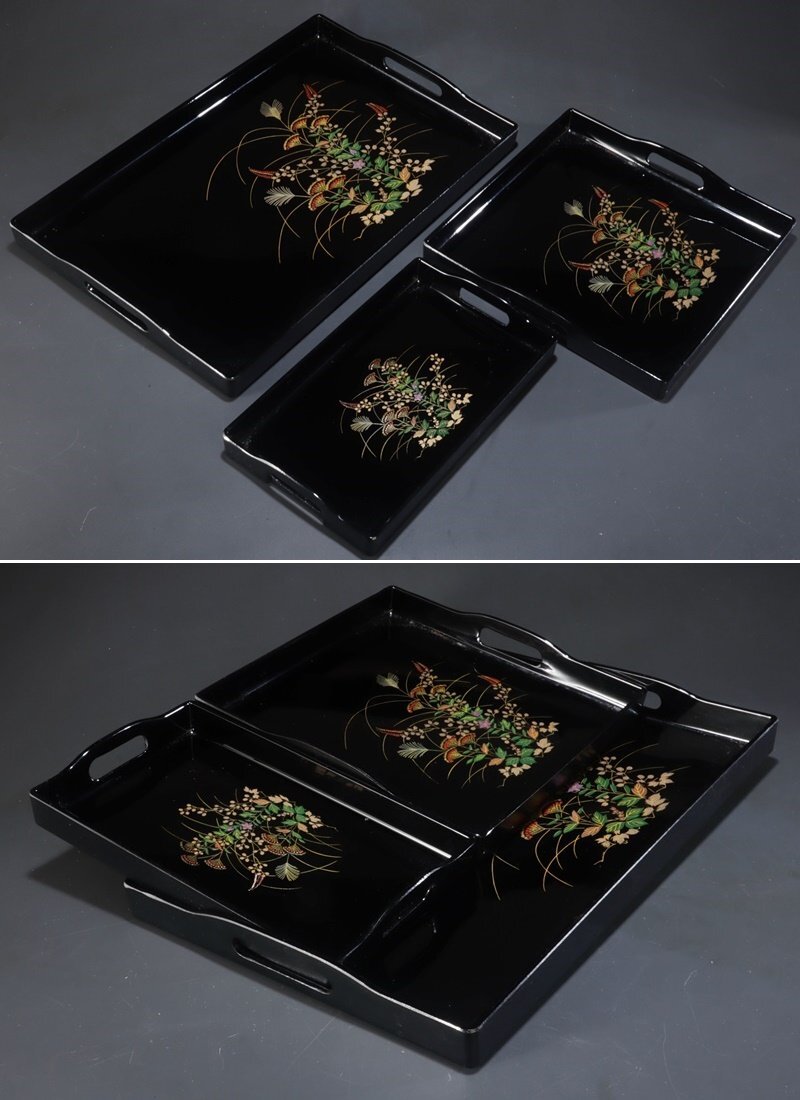 ■【夢讃岐】茶道煎茶/彩色蒔絵 長手盆 3枚揃 485×305 H40 bp378■ xvpbvx 商品詳細 御覧頂き、ありがとうございます。 【夢讃岐】茶道煎茶/彩色蒔絵 長手盆 3枚揃 485×305 H40 bp378 ○商品状態○ 経年ありますので、”やや傷や汚れあり”と表記しますが、状態の良い品。おそらく未使用。 素地は樹脂合成品。。 状態に関しては,充分に画像で確認の上、クレームの無い様に御入札下さい。 ○サイズ○ --×--mm/高さ--mmぐらい 画像参照ください。 ○御一読下さい○新品と表記しない限り,確実に経年有りますので, 新品とは違い、擦れアタリ等は有るとお考え下さい。 また細かい見落とし等も時代古物とお考えの上御容赦下さい。 気になる箇所は、画像にもアップ致しますので、ご了承の上御入札下さい。 記載・画像掲載されてない,見落としに関しては、 常識の範囲で誠意対応致します。 他にも漆器をメインに出品しておりますので、ぜひ御覧下さい。 翌日(土日落札分は月曜日)のうちに当方から入金案内などのご連絡を差し上げておりますが、もし2日以内に届いていないようでしたら、お手数ですがご連絡下さい。 発送可能な品に関しては定形外郵便をお受け致しますが 梱包して、郵便局まで行くことをご考慮いただき、 別途、200円加算させていただきますことを、 ご了承ください。 発送詳細 佐川急便・ゆうパック(選択できません) 定形外発送(私共の判断のみ対応) 代引き発送 支払詳細 ジャパンネット銀行ゆう貯銀行(ぱるる) ヤフー簡単決済佐川 e-コレクト ●リ素材・とタイトルのある物について●リメイク・素材としてご活用いただきたい品のジャンルを設けました。通常出品しづらい、傷のあるものまたは 、半端な物にこのタイトルをつけます。これまでは、処分対象になってた物ですが、ご要望がありましたのでこの形をとります。本来はとても良い物ですので 、ご活用ください。これは、いくら安価でも定形外発送は致しません。現状を、保持したいのが理由ですので、ご理解ください。 注意事項 *記載している年代や状態・判断などにまれに主観の相違が発生することがあると思いますので、御入札は画像をよくご覧になり、責任を持って慎重にお願いします。 *同梱は常識の範囲内で、快くお受け致します。複数物の同梱に関しましては,こちらの判断主導でお願い致します。*落札者様の一方的な都合、 理不尽な理由によるキャンセル・返品に関しましては原則的にお断りしています。*落札後初期連絡は2日、取引き終了目安は10日とさせていただきます。 連絡が頂けない場合,こちらの判断で取引きを破断する場合が有ります。 ご了承下さい。 *お取引については、 原則としてノークレーム、ノーリターンでお願い致します。御慎重に,御入札下さい。