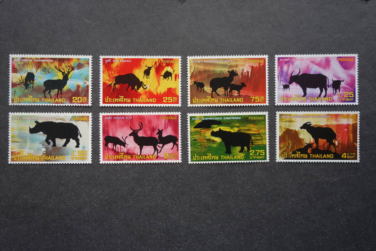 - 外国切手: タイ切手 「保護野生動物」(ションブルグジカ ほか)8種完 未使用