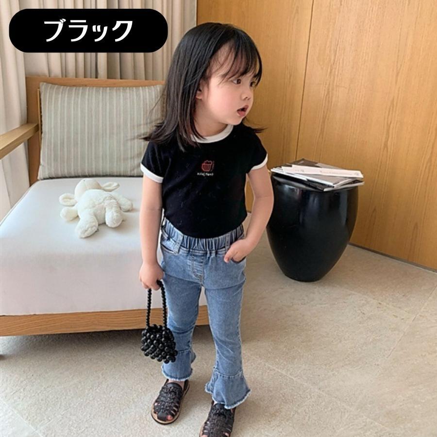 > ブラック 100cm 全8色 ツートンカラー コットン 半袖Tシャツ カットソー カジュアル 韓国子供服 女の子 男の子 キッズ ジュニア