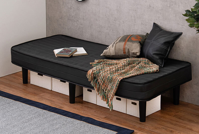 > シングルベッドより小さいコンパクト脚付きマットレスベッド ブラック色